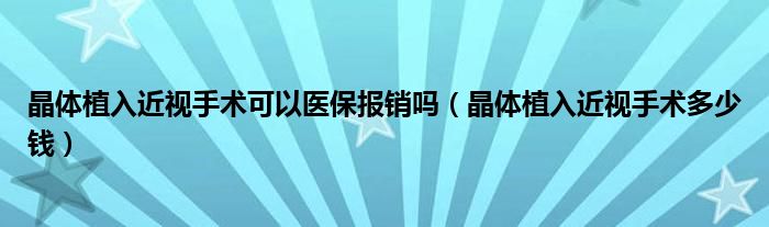 大家好,linda来为大家解答以上的问题。晶体植入近视手术可以医保报销吗,晶体植入近视手术多少钱很多人还不知道,现在让我们一起来看看吧!