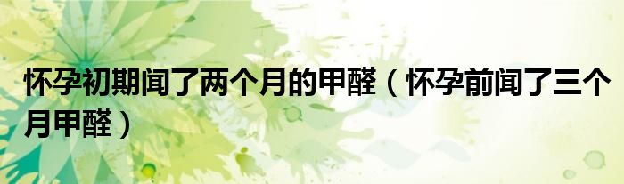 大家好,linda来为大家解答以上的问题。怀孕初期闻了两个月的甲醛,怀孕前闻了三个月甲醛很多人还不知道,现在让我们一起来看看吧!
