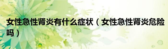 大家好,linda来为大家解答以上的问题。女性急性肾炎有什么症状,女性急性肾炎危险吗很多人还不知道,现在让我们一起来看看吧!