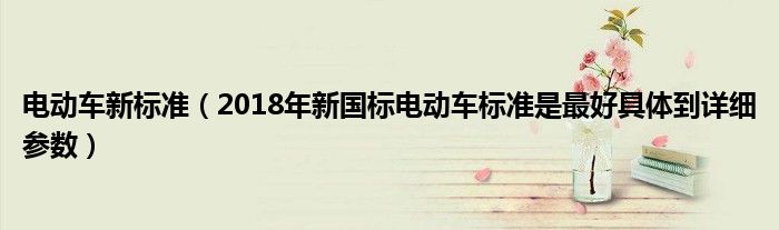 1,2018年新国标电动车标准是最好具体到详细参数 :这个在2018年《电动自行车安全技术规范》里面关于新国标电动车的标准有体现,详细参数有以下几点。 1、最高车速不能超过25千米/时 2、整车车体自重小于等于55千克 3、整车车体宽度小于等于45厘米 4、骑车时车速达到15千米/时必须发出提示音 5、前后花鼓的距离不能大于1.25米 6、鞍座长度不能大于35厘米 7、蓄电池标称电压不能大于48伏 8、电机的额定功率不能大于400瓦 9、最后一点就是电动自行车的标志性物件:就是必须有脚踏骑行功能。 目前符合新国标电动车标准的产品已经有不少了,其中爱玛电动车的GB001就是其中一款代表性产品。 以上就是新国标电动车的详细参数,希望能帮到你。