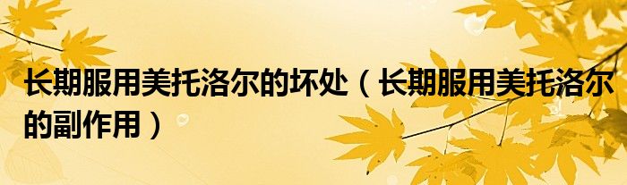 大家好,linda来为大家解答以上的问题。长期服用美托洛尔的坏处,长期服用美托洛尔的副作用很多人还不知道,现在让我们一起来看看吧!
