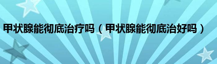 大家好,linda来为大家解答以上的问题。甲状腺能彻底治疗吗,甲状腺能彻底治好吗很多人还不知道,现在让我们一起来看看吧!
