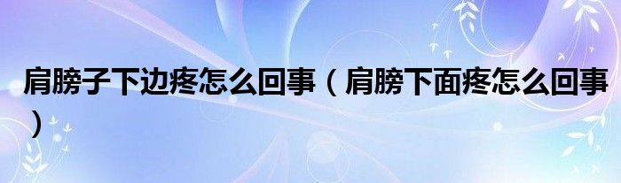 大家好,linda来为大家解答以上的问题。肩膀子下边疼怎么回事,肩膀下面疼怎么回事很多人还不知道,现在让我们一起来看看吧!