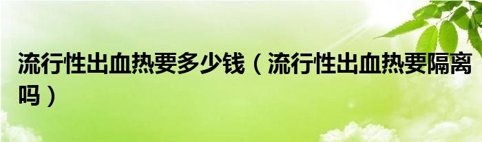 大家好,linda来为大家解答以上的问题。流行性出血热要多少钱,流行性出血热要隔离吗很多人还不知道,现在让我们一起来看看吧!