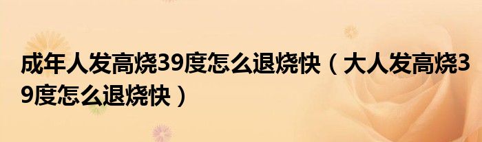 大家好,linda来为大家解答以上的问题。成年人发高烧39度怎么退烧快,大人发高烧39度怎么退烧快很多人还不知道,现在让我们一起来看看吧!