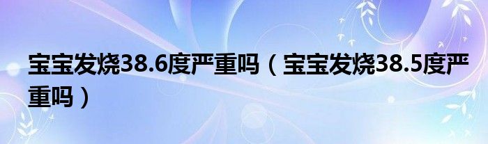 大家好,linda来为大家解答以上的问题。宝宝发烧38.6度严重吗,宝宝发烧38.5度严重吗很多人还不知道,现在让我们一起来看看吧!