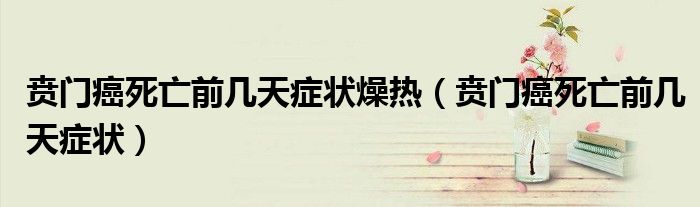 大家好,linda来为大家解答以上的问题。贲门癌死亡前几天症状燥热,贲门癌死亡前几天症状很多人还不知道,现在让我们一起来看看吧!