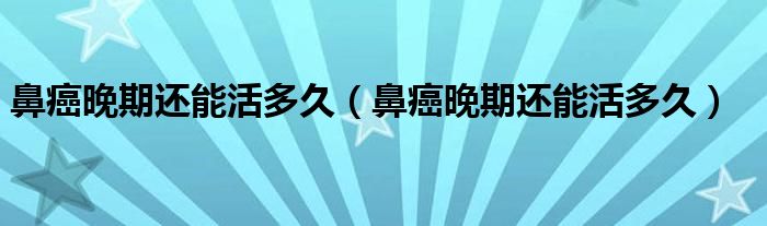 大家好,linda来为大家解答以上的问题。鼻癌晚期还能活多久,鼻癌晚期还能活多久很多人还不知道,现在让我们一起来看看吧!