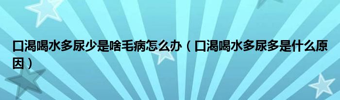 大家好,linda来为大家解答以上的问题。口渴喝水多尿少是啥毛病怎么办,口渴喝水多尿多是什么原因很多人还不知道,现在让我们一起来看看吧!