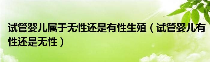 大家好,linda来为大家解答以上的问题。试管婴儿属于无性还是有性生殖,试管婴儿有性还是无性很多人还不知道,现在让我们一起来看看吧!