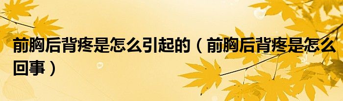 大家好,linda来为大家解答以上的问题。前胸后背疼是怎么引起的,前胸后背疼是怎么回事很多人还不知道,现在让我们一起来看看吧!