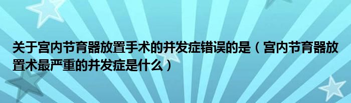 大家好,linda来为大家解答以上的问题。关于宫内节育器放置手术的并发症错误的是,宫内节育器放置术最严重的并发症是什么很多人还不知道,现在让我们一起来看看吧!