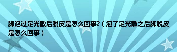 大家好,linda来为大家解答以上的问题。脚泡过足光散后脱皮是怎么回事?,泡了足光散之后脚脱皮是怎么回事很多人还不知道,现在让我们一起来看看吧!