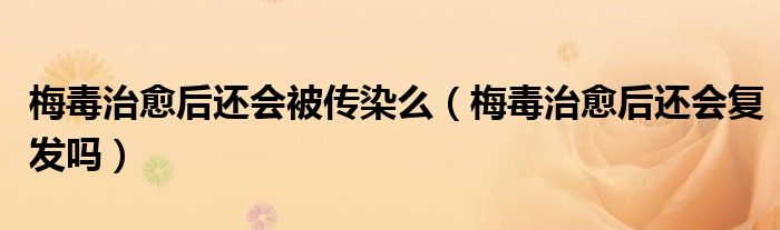 大家好,linda来为大家解答以上的问题。梅毒治愈后还会被传染么,梅毒治愈后还会复发吗很多人还不知道,现在让我们一起来看看吧!