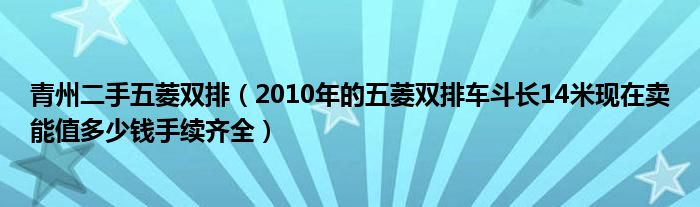大家好,小常来为大家解答以下问题,对于青州二手五菱双排,2010年的五菱双排车斗长14米现在卖能值多少钱手续齐全很多人还不知道,今天让我们一起来看看吧!