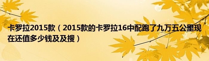 1,2015款的卡罗拉16中配跑了九万五公里现在还值多少钱 搜:你好2015款的卡罗拉,1.6中配,跑了九万五公里。现在还值30000多块钱左右吧