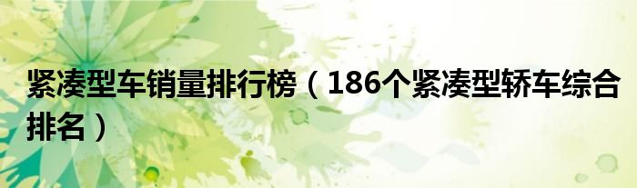 大家好,小常来为大家解答以下问题,对于紧凑型车销量排行榜,186个紧凑型轿车综合排名很多人还不知道,今天让我们一起来看看吧!