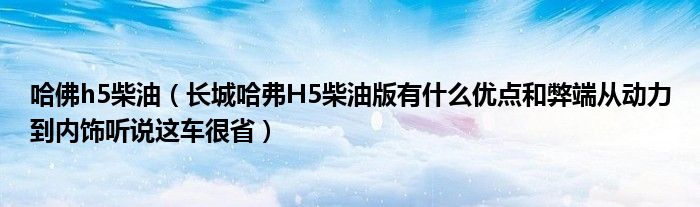 1,长城哈弗H5柴油版有什么优点和弊端从动力到内饰听说这车很省:H5搭载的是长城自主研发的绿静2.0T柴油发动机,在国内遥遥领先,H5皮实耐用,动力充足,买了绝对不会后悔!内饰不是太好,有点粗糙,你买顶配的那款内饰好点。