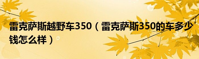 大家好,小常来为大家解答以下问题,对于雷克萨斯越野车350,雷克萨斯350的车多少钱怎么样很多人还不知道,今天让我们一起来看看吧!