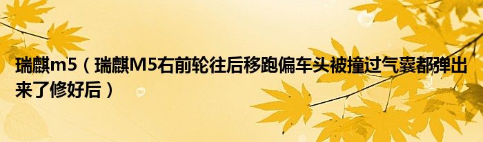 大家好,小常来为大家解答以下问题,对于瑞麒m5,瑞麒M5右前轮往后移跑偏车头被撞过气囊都弹出来了修好后很多人还不知道,今天让我们一起来看看吧!