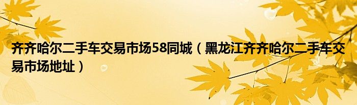 大家好,小常来为大家解答以下问题,对于齐齐哈尔二手车交易市场58同城,黑龙江齐齐哈尔二手车交易市场地址很多人还不知道,今天让我们一起来看看吧!