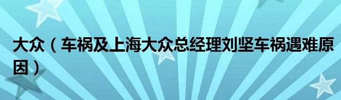 大家好,小常来为大家解答以下问题,对于大众,车祸及上海大众总经理刘坚车祸遇难原因很多人还不知道,今天让我们一起来看看吧!