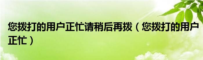 大家好,小晋来为大家解答以下问题,关于您拨打的用户正忙请稍后再拨,您拨打的用户正忙很多人还不知道,今天让我们一起来看看吧!