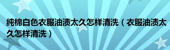 大家好,小晋来为大家解答以下问题,关于纯棉白色衣服油渍太久怎样清洗,衣服油渍太久怎样清洗很多人还不知道,今天让我们一起来看看吧!
