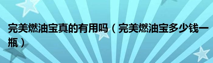 大家好,阳阳来为大家讲解下。完美燃油宝真的有用吗,完美燃油宝多少钱一瓶很多人还不知道,现在让我们一起来看看吧!