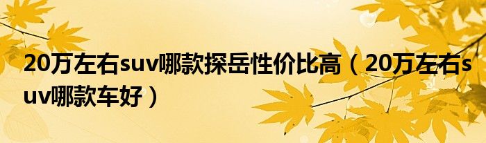 大家好,阳阳来为大家讲解下。20万左右suv哪款探岳性价比高,20万左右suv哪款车好很多人还不知道,现在让我们一起来看看吧!