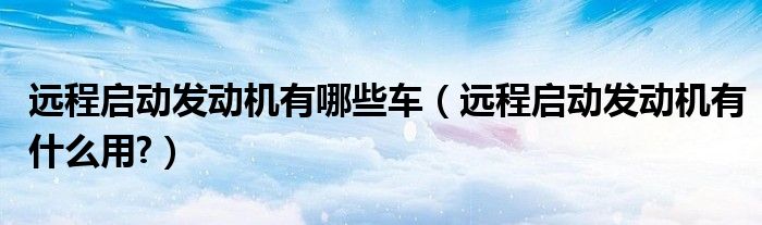 大家好,小美来为大家解答以上问题。远程启动发动机有哪些车,远程启动发动机有什么用?很多人还不知道,现在让我们一起来看看吧!