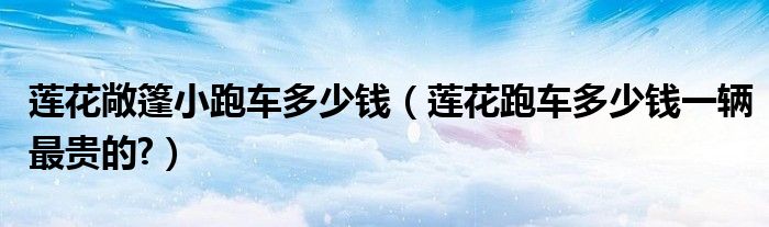 大家好,小美来为大家解答以上问题。莲花敞篷小跑车多少钱,莲花跑车多少钱一辆最贵的?很多人还不知道,现在让我们一起来看看吧!
