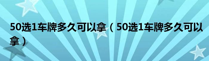 大家好,小美来为大家解答以上问题。50选1车牌多久可以拿,50选1车牌多久可以拿很多人还不知道,现在让我们一起来看看吧!