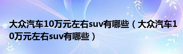 大家好,小美来为大家解答以上问题。大众汽车10万元左右suv有哪些,大众汽车10万元左右suv有哪些很多人还不知道,现在让我们一起来看看吧!