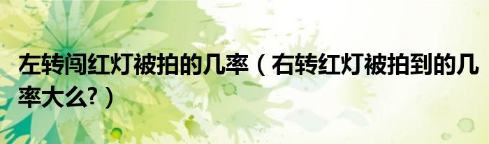大家好,小美来为大家解答以上问题。左转闯红灯被拍的几率,右转红灯被拍到的几率大么?很多人还不知道,现在让我们一起来看看吧!