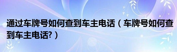 大家好,小美来为大家解答以上问题。通过车牌号如何查到车主电话,车牌号如何查到车主电话?很多人还不知道,现在让我们一起来看看吧!