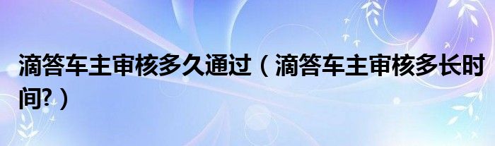 大家好,小美来为大家解答以上问题。滴答车主审核多久通过,滴答车主审核多长时间?很多人还不知道,现在让我们一起来看看吧!