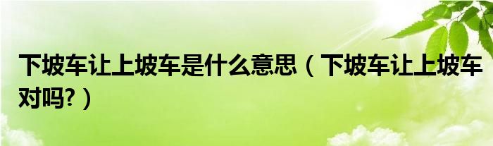 大家好,小美来为大家解答以上问题。下坡车让上坡车是什么意思,下坡车让上坡车对吗?很多人还不知道,现在让我们一起来看看吧!