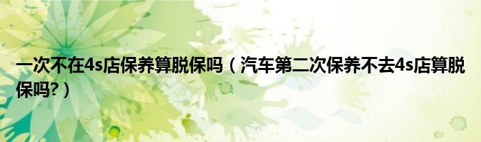 大家好,小美来为大家解答以上问题。一次不在4s店保养算脱保吗,汽车第二次保养不去4s店算脱保吗?很多人还不知道,现在让我们一起来看看吧!