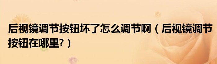 大家好,小美来为大家解答以上问题。后视镜调节按钮坏了怎么调节啊,后视镜调节按钮在哪里?很多人还不知道,现在让我们一起来看看吧!