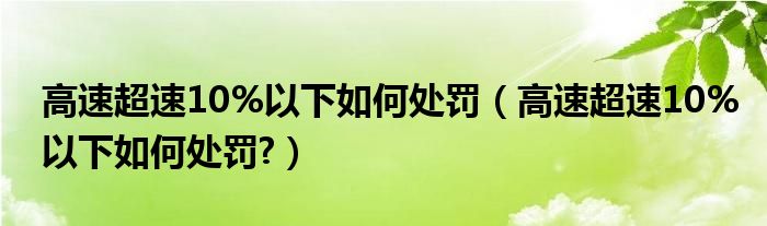 大家好,小美来为大家解答以上问题。高速超速10%以下如何处罚,高速超速10%以下如何处罚?很多人还不知道,现在让我们一起来看看吧!