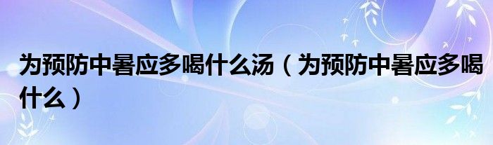 大家好,小晋来为大家解答以下问题,关于为预防中暑应多喝什么汤,为预防中暑应多喝什么很多人还不知道,今天让我们一起来看看吧!