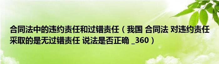 关于合同法中的违约责任和过错责任,我国 合同法 对违约责任采取的是无过错责任 说法是否正确 _360这个很多人还不知道,今天菲菲来为大家解答以上的问题,现在让我们一起来看看吧!
