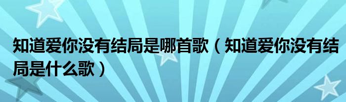 关于知道爱你没有结局是哪首歌,知道爱你没有结局是什么歌这个很多人还不知道,今天菲菲来为大家解答以上的问题,现在让我们一起来看看吧!