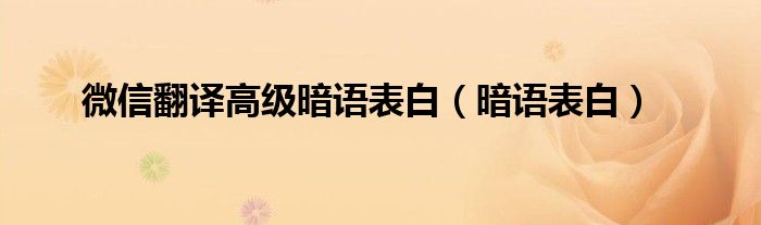 关于微信翻译高级暗语表白,暗语表白这个很多人还不知道,今天菲菲来为大家解答以上的问题,现在让我们一起来看看吧!