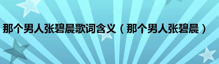 关于那个男人张碧晨歌词含义,那个男人张碧晨这个很多人还不知道,今天菲菲来为大家解答以上的问题,现在让我们一起来看看吧!