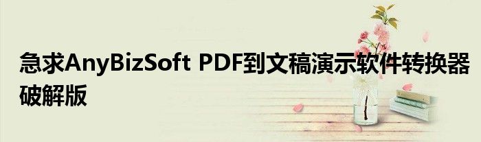 关于急求AnyBizSoft PDF到文稿演示软件转换器破解版这个很多人还不知道,今天菲菲来为大家解答以上的问题,现在让我们一起来看看吧!