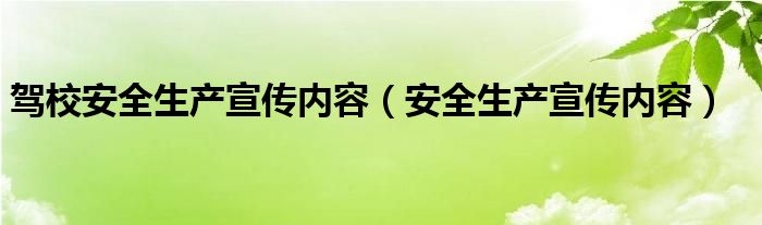 关于驾校安全生产宣传内容,安全生产宣传内容这个很多人还不知道,今天菲菲来为大家解答以上的问题,现在让我们一起来看看吧!