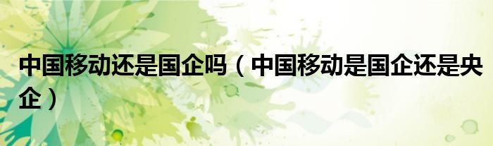 关于中国移动还是国企吗,中国移动是国企还是央企这个很多人还不知道,今天菲菲来为大家解答以上的问题,现在让我们一起来看看吧!