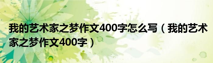 关于我的艺术家之梦作文400字怎么写,我的艺术家之梦作文400字这个很多人还不知道,今天菲菲来为大家解答以上的问题,现在让我们一起来看看吧!